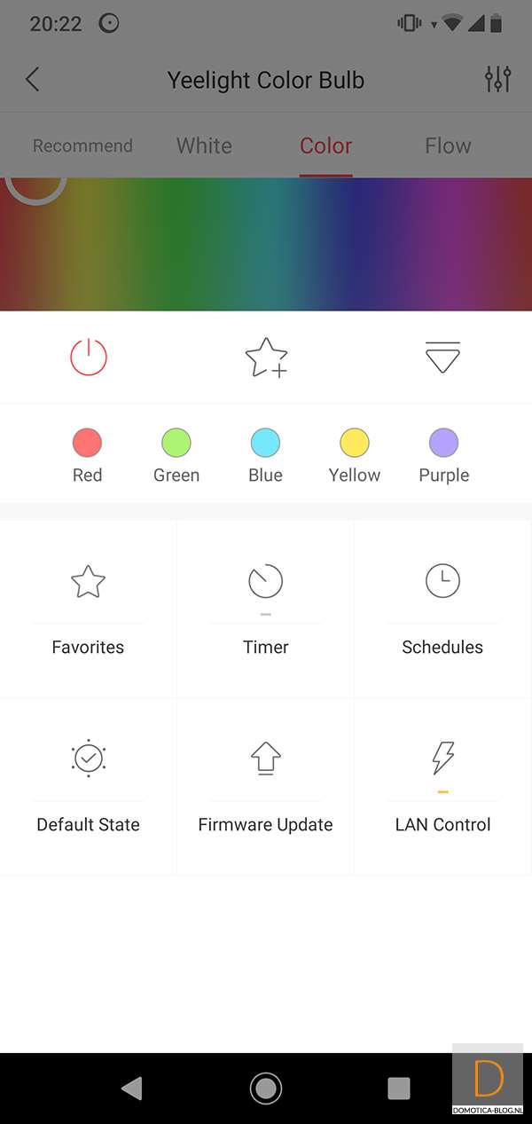 Je kunt de natuurlijk de lamp aan en uitzetten, dimmen en de kleur bepalen.