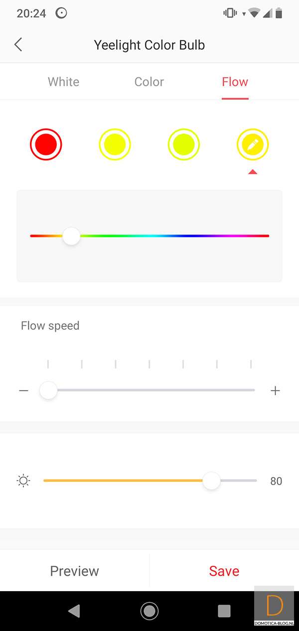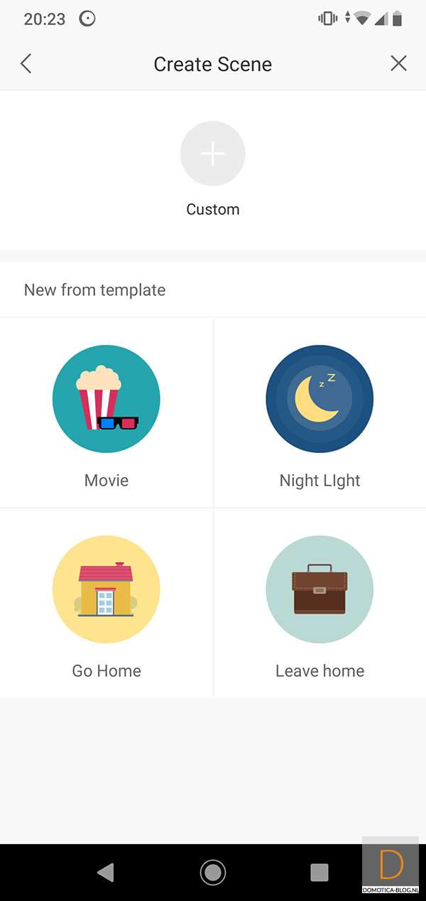Het is wel aardig om deze lamp te gebruiken als wake up light. Dus we maken hier een scene voor. Waarbij we gebruik maken van een template. Vervolgens maken we met de flow een mooie kleurovergang.