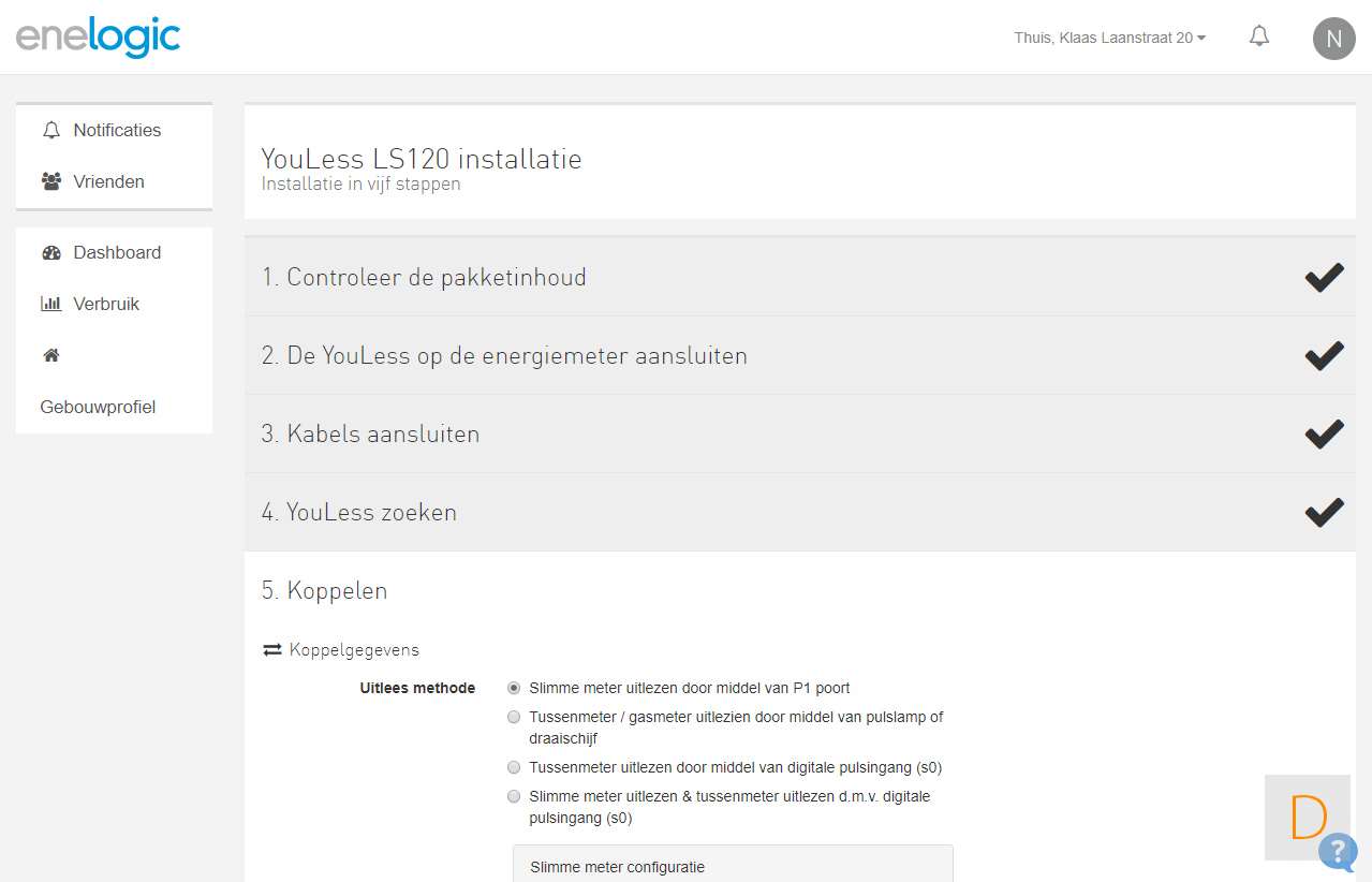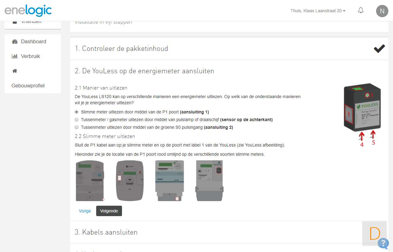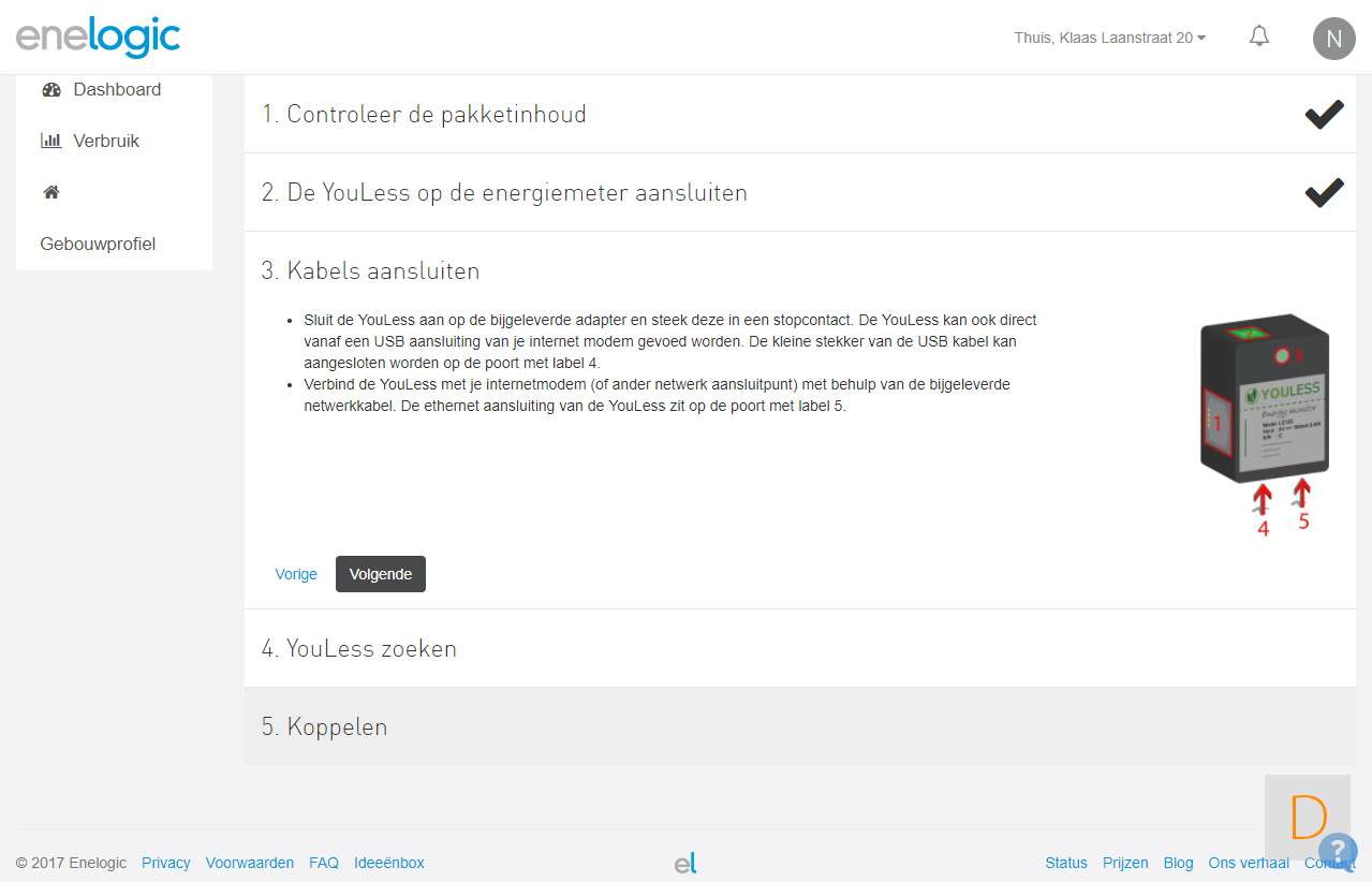 Het installeren van de Youless op de Enelogic website is niet al te veel werk. Het is een kwestie van je te registreren en de stappen te volgen.