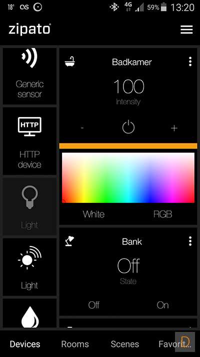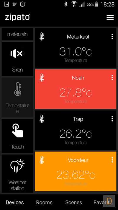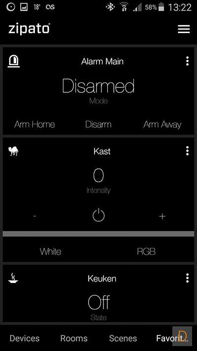 De ZipaTile is ook te bedienen via je smartphone met de Zipato APP (Android/Ios). Dit is bijna de zelfde APP als op de ZipaTile draait.