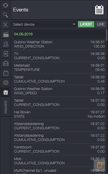 Om te zien wanneer iets aan is gegaan kun je een overzicht opvragen van de gebeurtenissen. Je kunt per module, of alle modules te gelijk live bekijken of terugkijken in de historie. Het is jammer dat je niet heel erg ver terug kunt kijken.