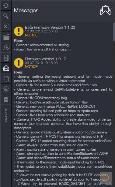 Zipato brengt regelmatig een nieuwe firmware uit voor hun producten. Hier krijg je automatisch een melding van, als je inlogt op de dashboard. Wat de veranderingen zijn kun je in dit gedeelte lezen.