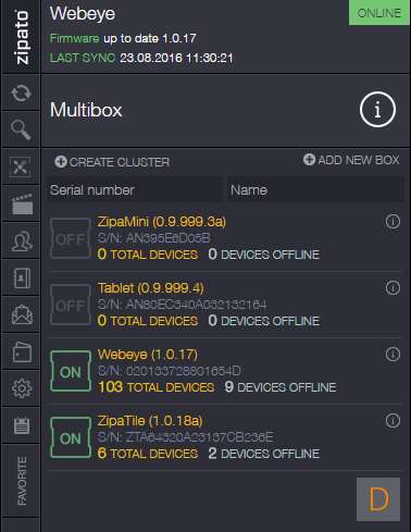 In dit scherm vind je de gegevens van de Zipabox. Daarnaast kun je hier ook een andere box toevoegen zodat je kunt switchen als je meerdere Zipaboxen hebt.