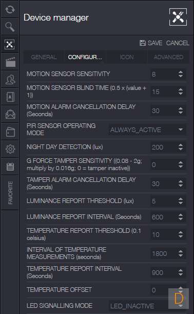 Bij de configuratie van de module kun je alle instellingen (parameters) van de module vinden. Zipato geeft de modules altijd zeer goed ondersteuning met vaak alle configuratie mogelijkheden. Andere fabrikanten kunnen hier een voorbeeld aan nemen. Vaak is de ondersteuning van nieuwe modules snel regelt.