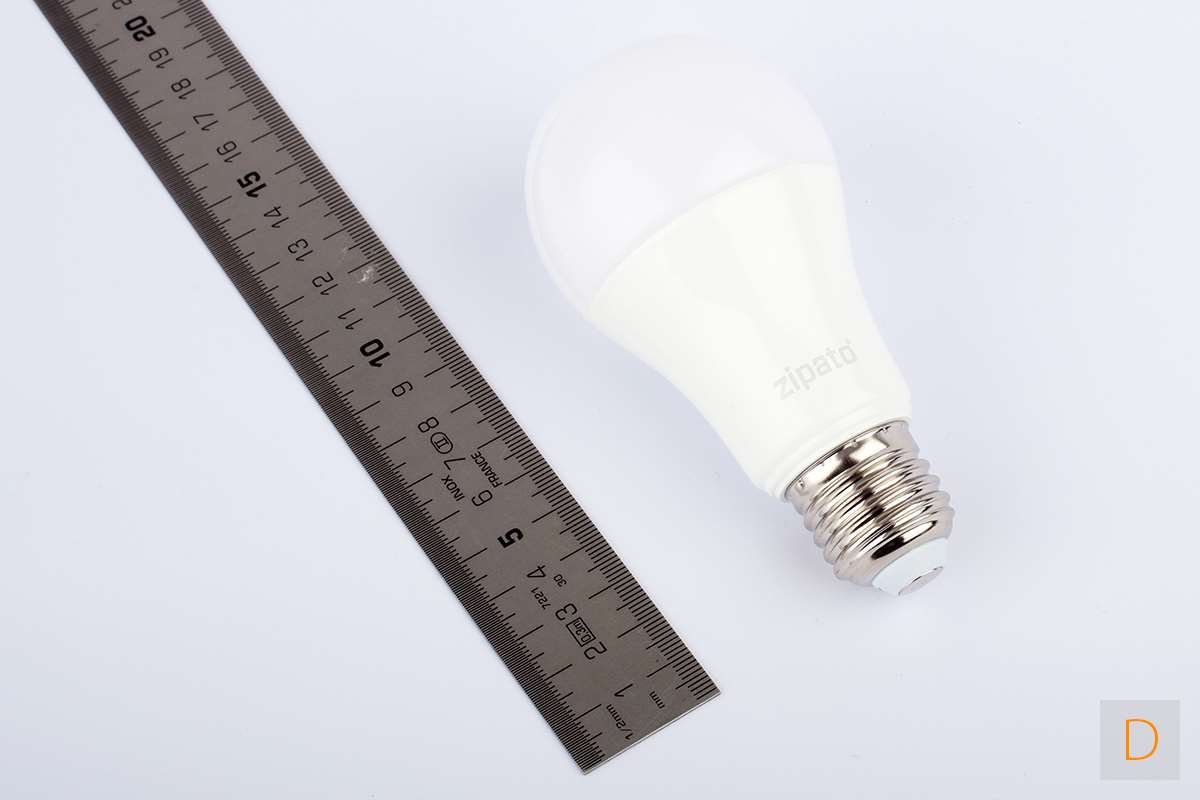 Hij is iets groter dan een standaard gloeilamp maar toch nog redelijk compact met zijn 12,5 x 6 cm. Hij heeft een vermogen van 9,5w en geeft 806lm wat meer dan voldoende is om een woonkamer goed van licht te kunnen voorzien. In mijn situatie moest ik hem terug dimmen naar 50% om niet te veel licht te hebben. Daarover gesproken: het is dus ook mogelijk om de lamp te dimmen. Hij geeft goed stabiel licht (ook bij lagere dim niveaus).