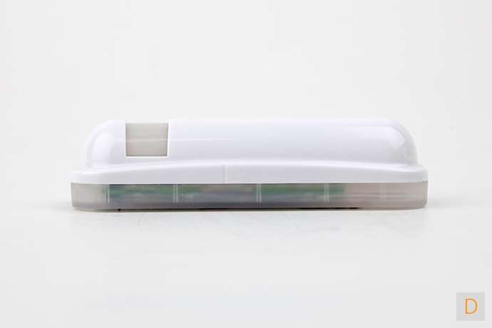 Aan de achterkant zit een "tamper" schakelaar, dus mocht een inbreker hem eraf schoppen zal de sensor toch een alarmsignaal afgeven aan de controller.