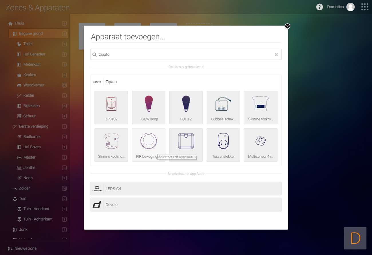 Het toevoegen van deze motion sensor werkt helaas niet op de Homey. Gelukkig is er een actieve community aanwezig welke ondersteuning voor apparaten ontwikkeld. Om ondersteuning te krijgen heb ik contact gezocht met de ontwikkelaar van de Zipato APP. Na opsturen van de sensor heeft hij ondersteuning gemaakt. Hierna kon ik hem zonder problemen toevoegen.