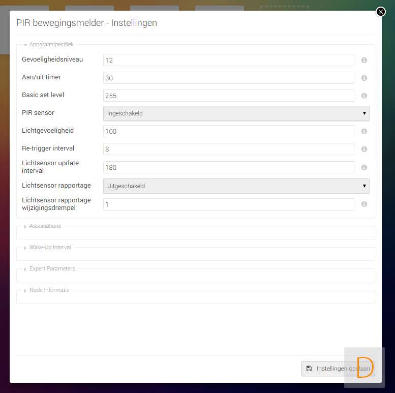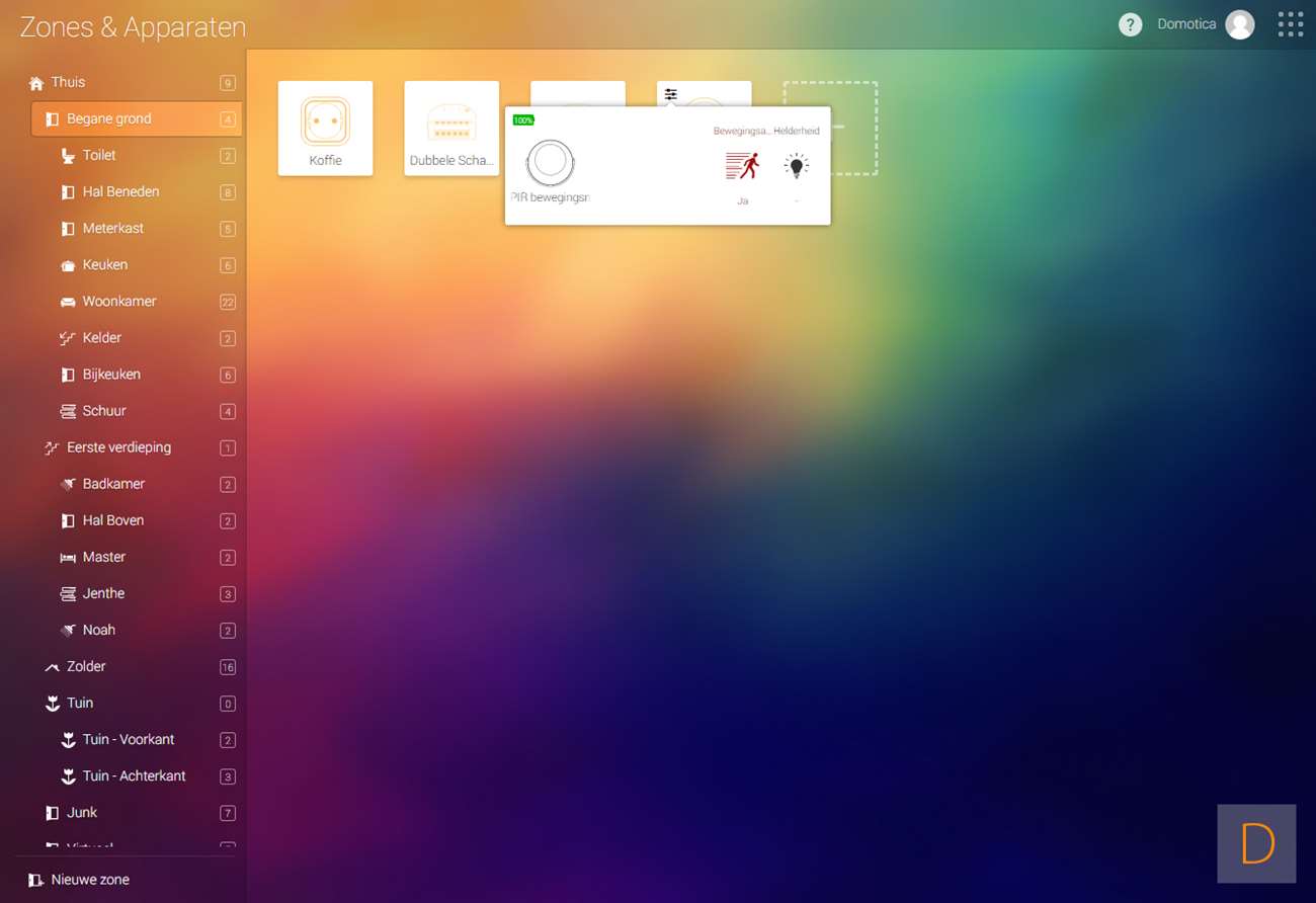 Hij werd toegevoegd en zie een LUX meter en bewegingsmelder verschijnen en zie alle configuratie mogelijkheden.