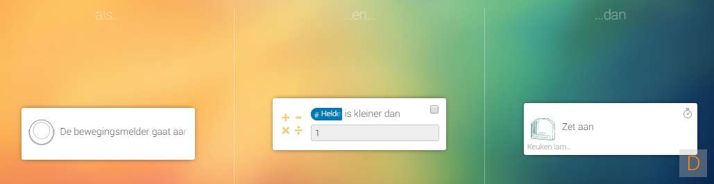 Ik wil graag gebruik maken van de Lux meter en de bewegingsmelder om een lamp aan te zetten. Hierdoor zal de lamp overdag niet aangaan.