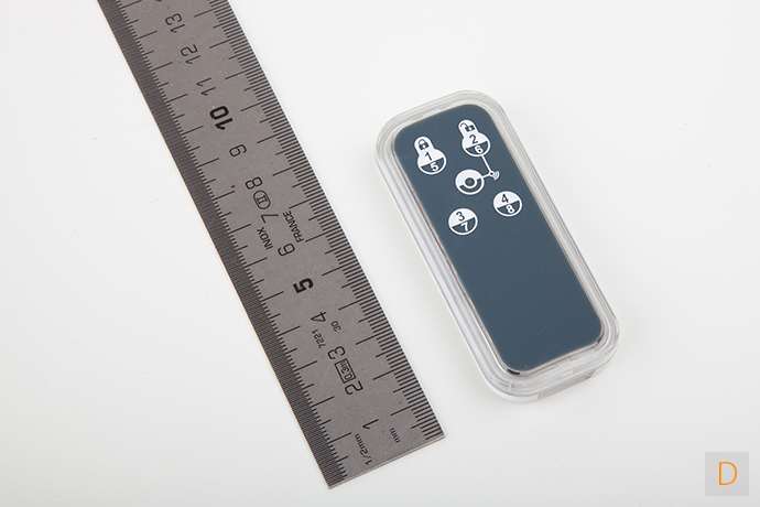Elke knop is ook nog dubbel te klikken. In totaal kunnen er dus 4 x 2 (van de dubbelklik) = 8 x 2 (van de kleur) = 16 verschillende acties worden uitgevoerd. Dat is best veel voor zo'n kleine remote van 80 x 36 mm.
