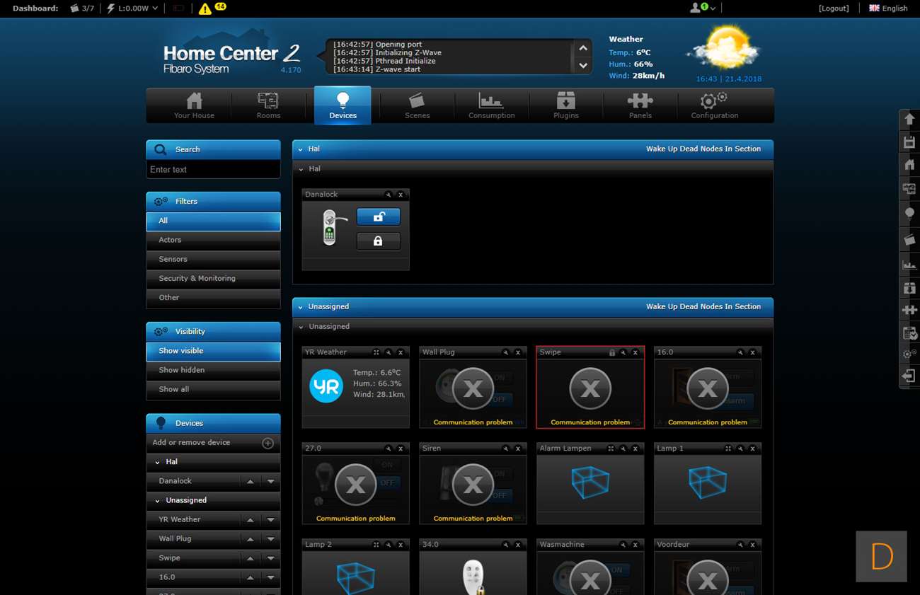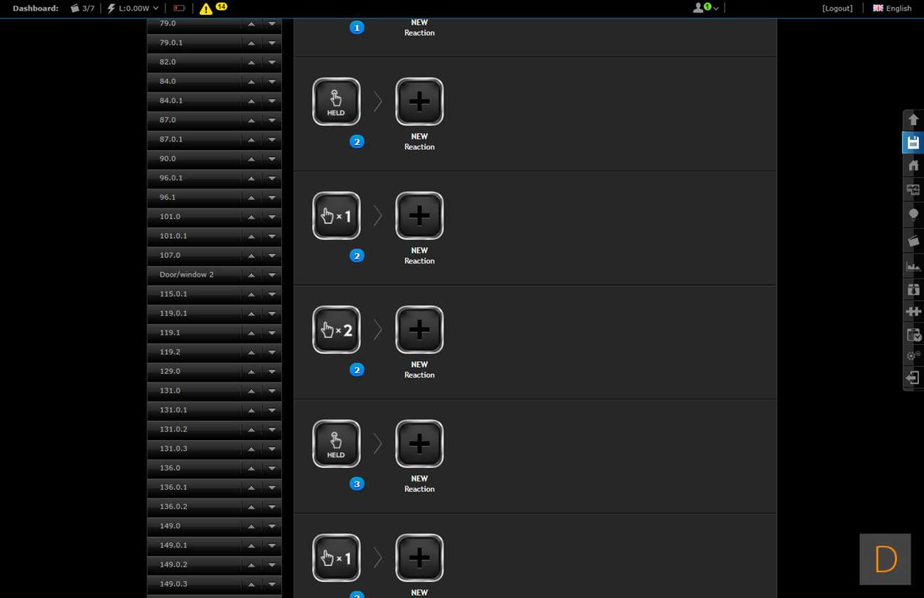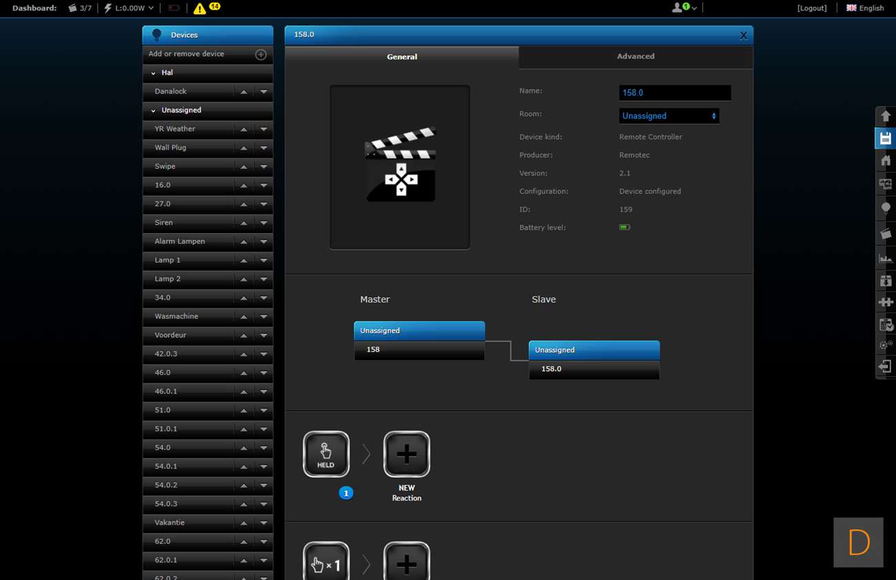 Het toevoegen van deze scene master gaat door in te loggen op de HC2 en naar het device gedeelte te gaan. Vervolgens klik je op "add new device" en hierna op add. De toevoegen procedure zal starten. Hierna is het zaak om het klepje aan de achterkant los te maken en de batterijen te plaatsen. Vervolgens klikje op het "L" knopje om het toevoegen te starten. Deze zal gaan knipperen en als hij gevonden word zal deze 4 sec lang oplichten om hierna weer te gaan knipperen. Hij werd netjes gevonden door de HC2 en zie hem verschijnen op de apparaten. Bij de configuratie kan ik instellen welke knop wat doet.