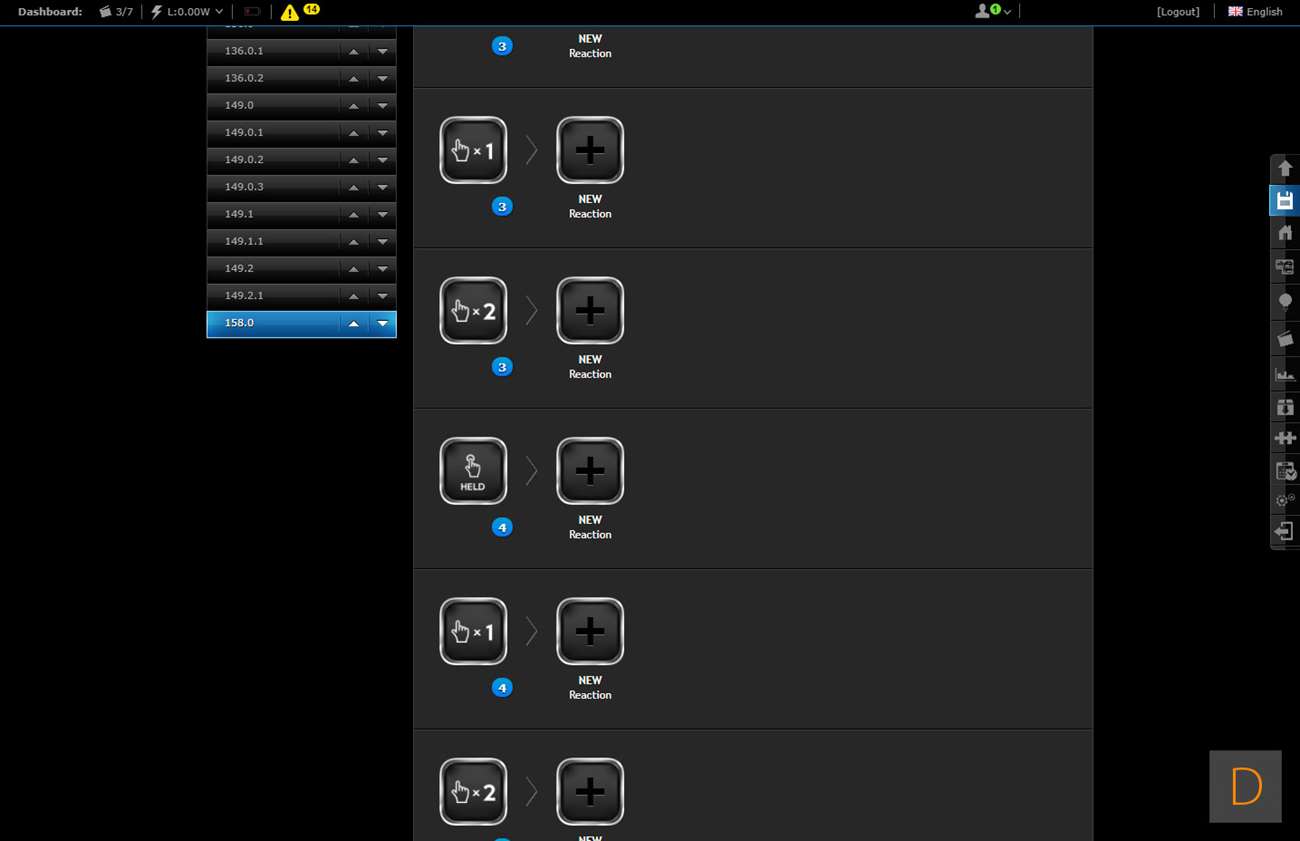 Met deze scene master kun je natuurlijk van alles en nog wat opstarten en regelen. Onderstaand is slechts een voorbeeld om een scene welke diversen lampen aanzet op te starten.